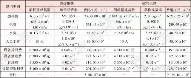 表6 燃煤、燃氣供熱方式的運行費用比較
